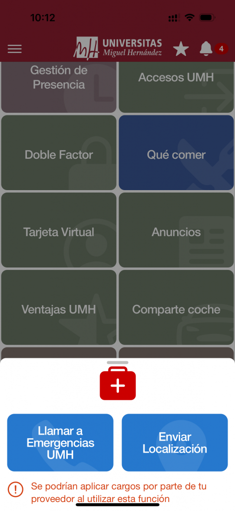 Ante cualquier situación de emergencia, puedes avisar utilizando el botón de emergencias situado en la UMHapp.